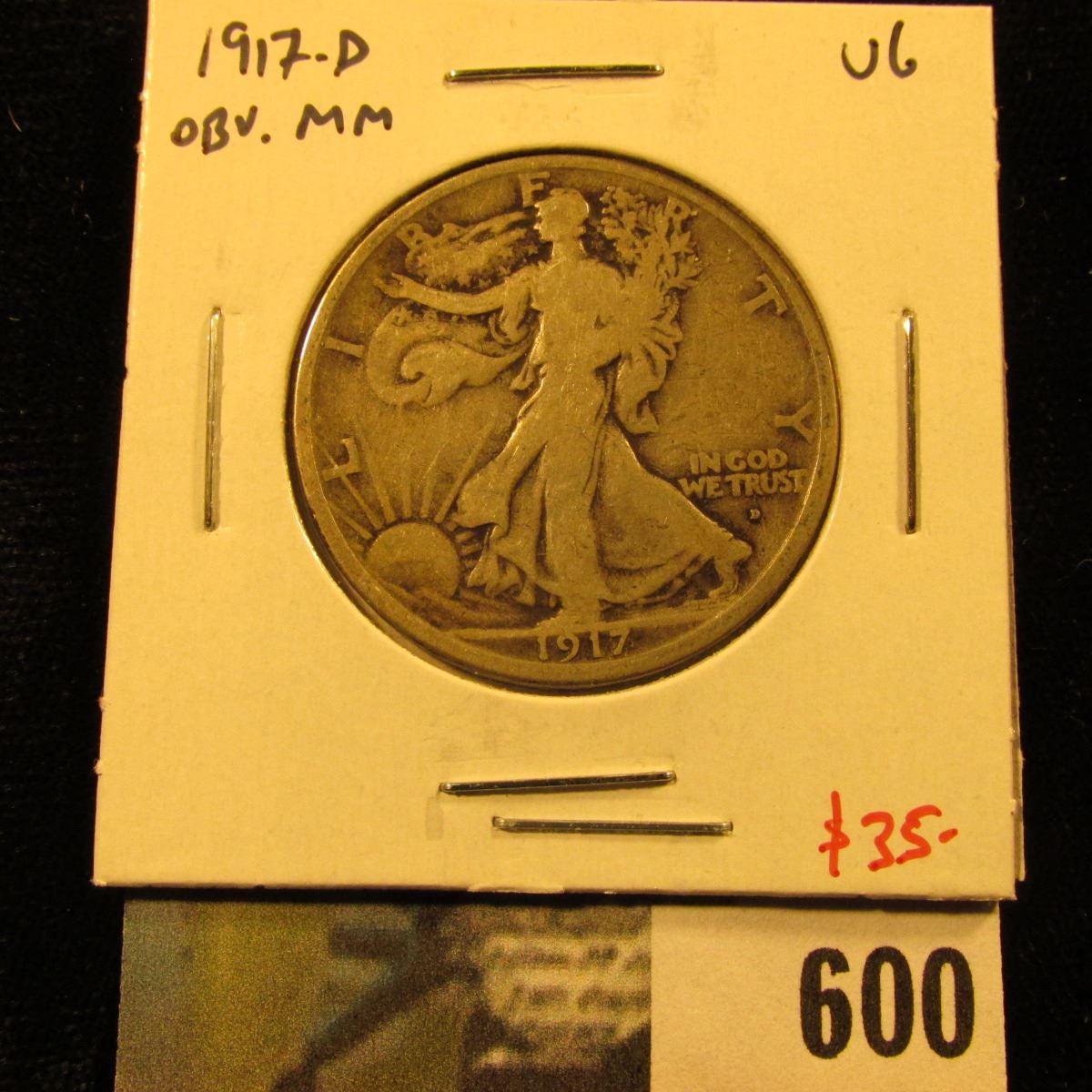 1917-D Walking Liberty Half Dollar, Obverse Mint mark, VG, value $35