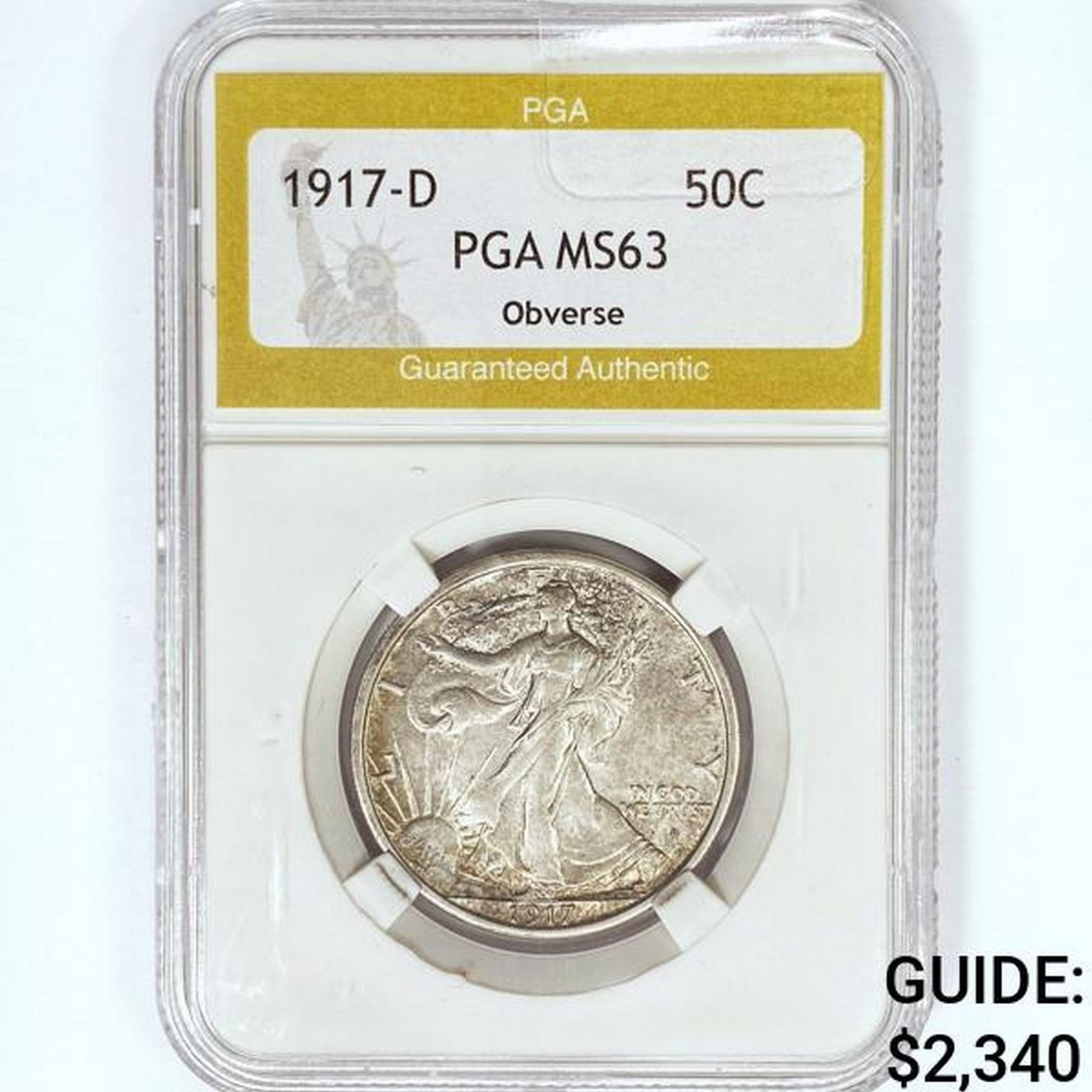 1917-D Walking Liberty Half Dollar PGA MS63 OBV