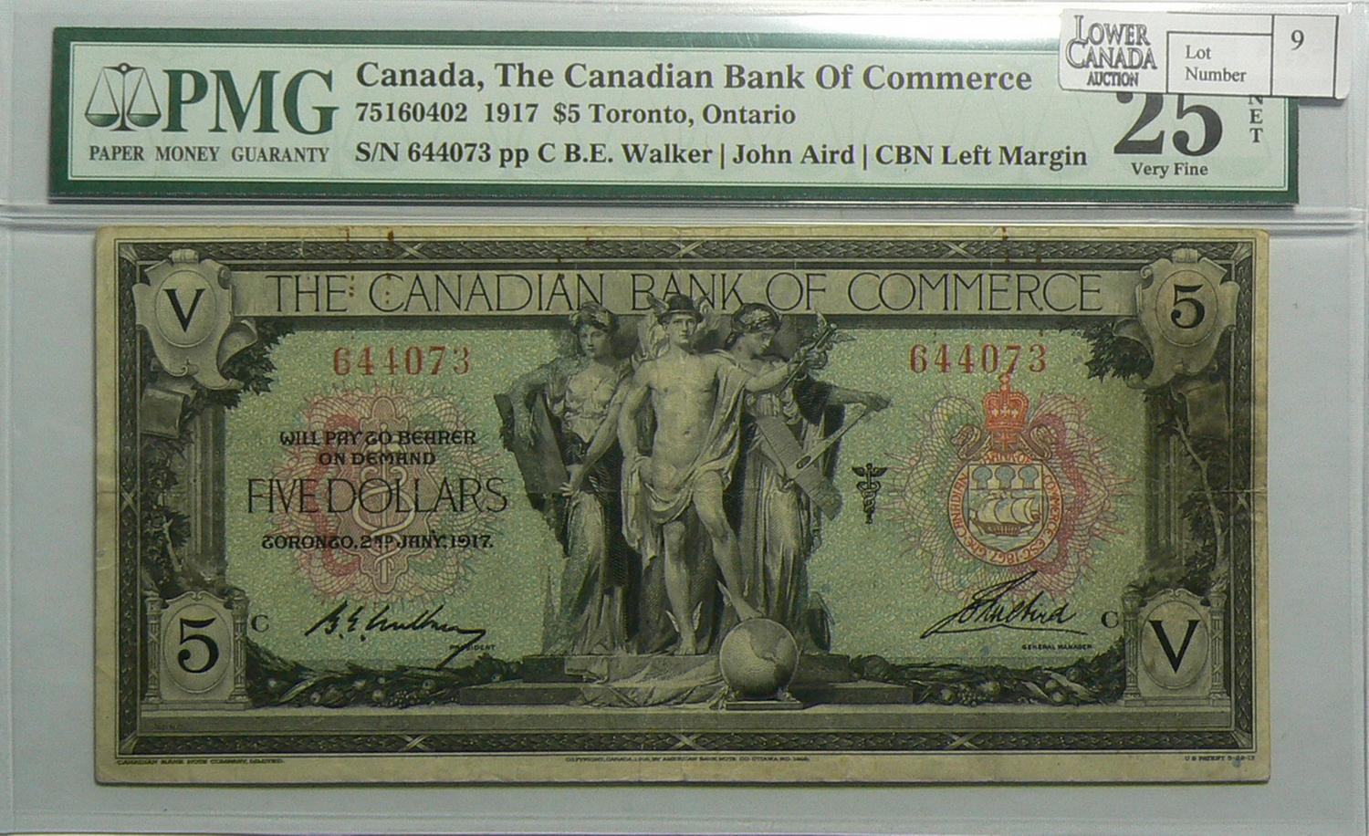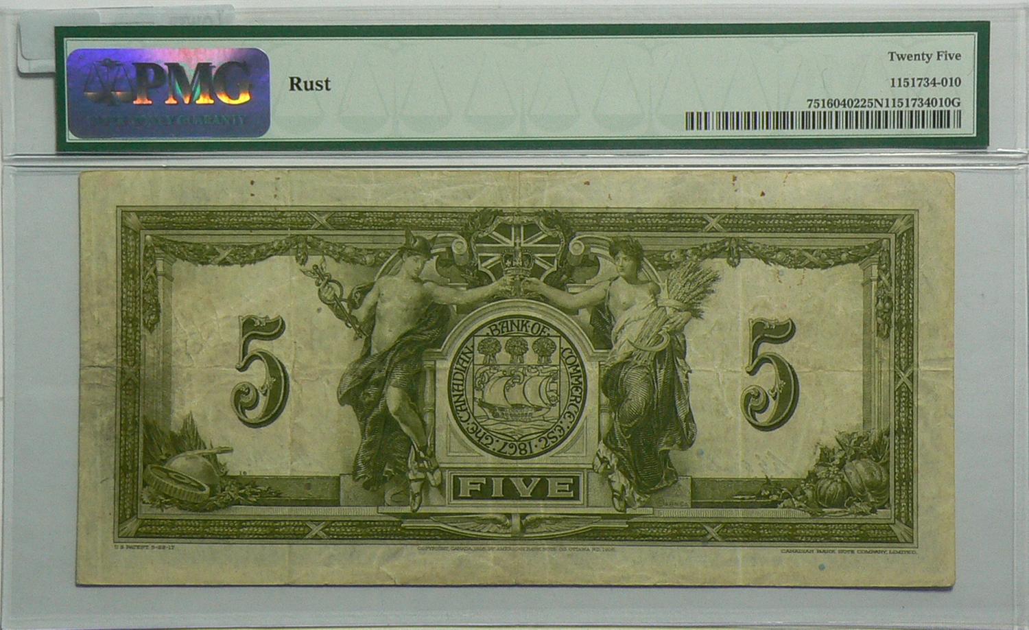 1917 Five Dollars Canadian Bank of Commerce, 75-16-04-02, PMG VF-25, Walker Aird, Letter C, serial 644073.