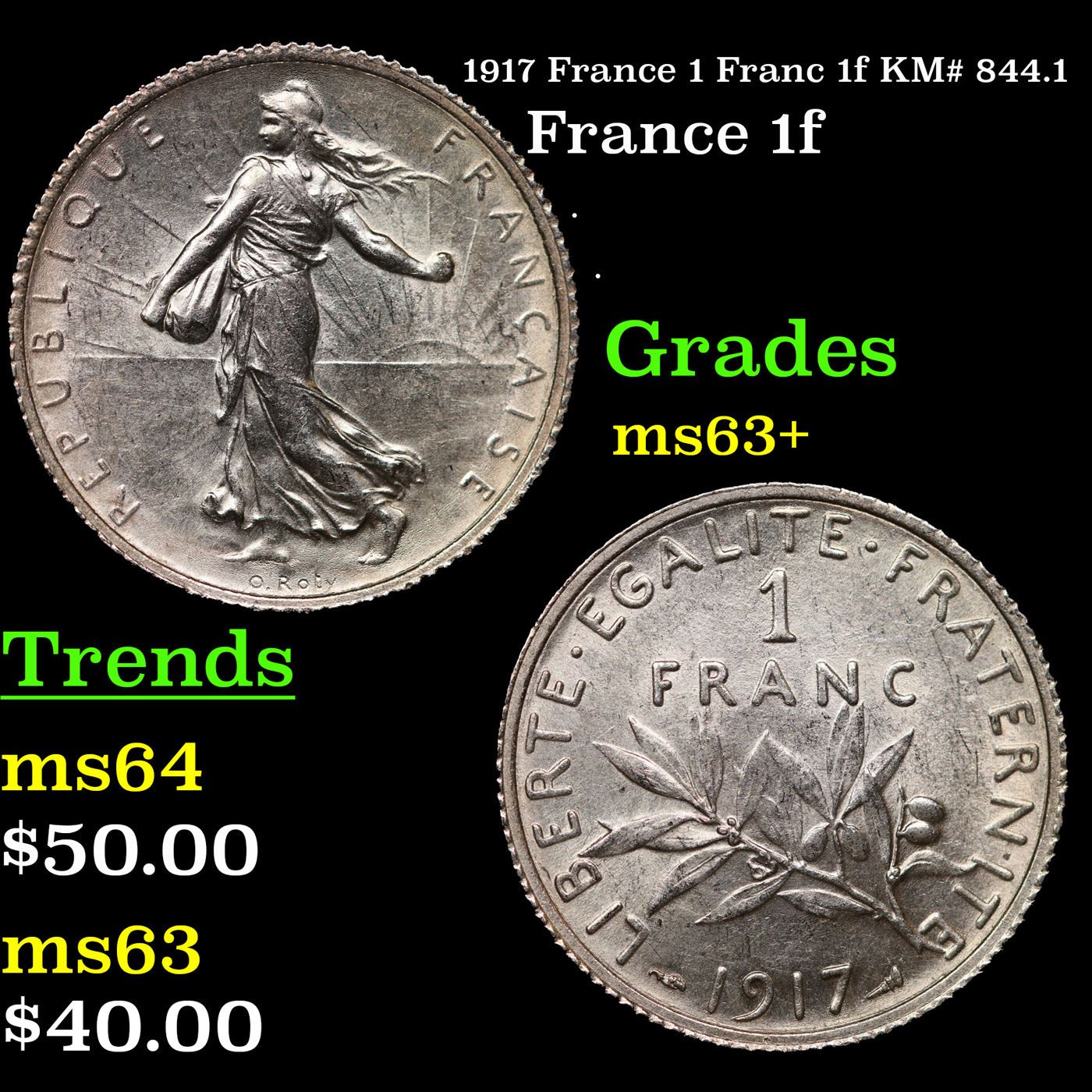 1917 France 1 Franc 1f KM# 844.1 Grades Select+ Unc.