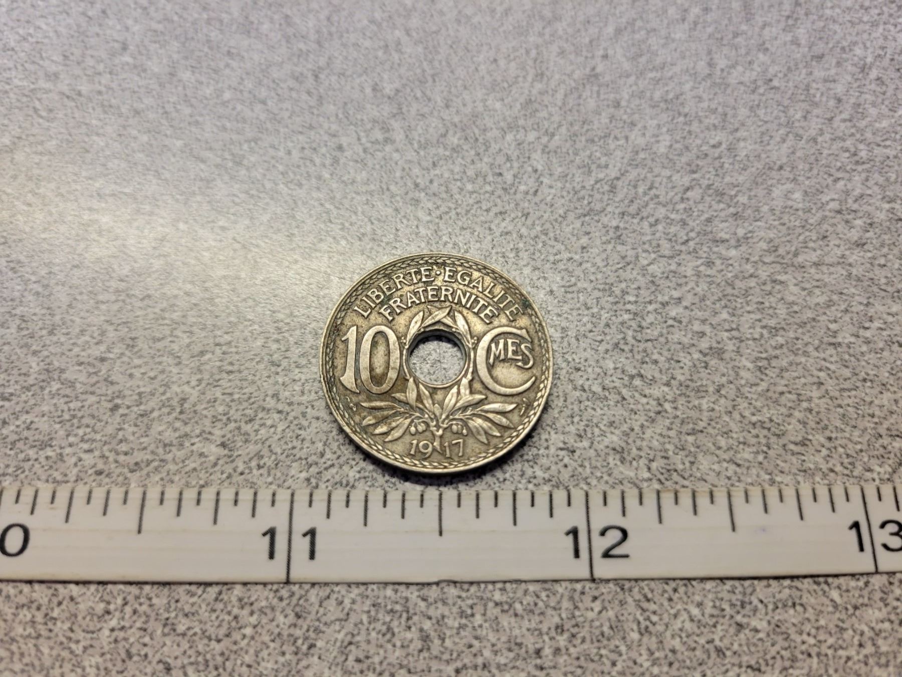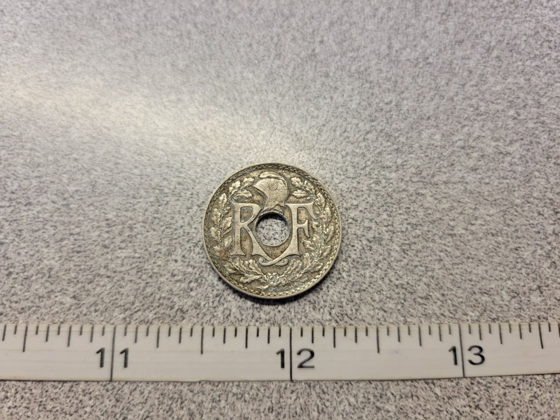 1917 France 25 centimes key date, 3rd republic French center hole coin