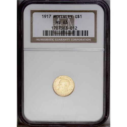 1917 G$1 McKinley MS63 NGC. The 1916 and 1917 McKinley