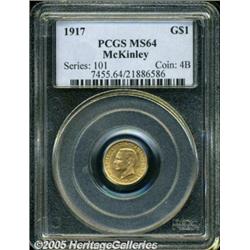 <B>1917 G$1 McKinley MS64 PCGS.</B></I> Sharply struck with lustrous, nicely toned surfaces that are nearly pristine. Probably kept from Gem status by a faint fingerprint fragment in the left obverse field.