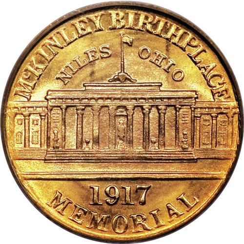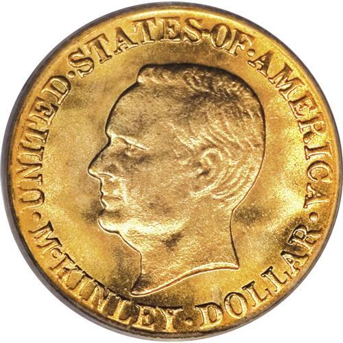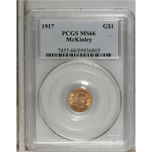 <B>1917 G$1 McKinley MS66 PCGS.</B></I> The second of two McKinley Birthplace commemorative issues and the penultimate gold dollar struck under the auspices of the United States Mint. The swirling surfaces are predominantly peach-gold with a patch of orange at the upper right obverse that extends to parts of the reverse. A wonderfully well-preserved piece.<BR><BR><b>Shipping:</b> Coins & Currency (<a target="_blank" href="http://www.heritageauctions.com/common/shipping.php">view shipping information</a>)