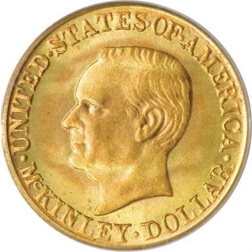 <B>1917 G$1 McKinley MS66 PCGS.</B></I> The tragic assassination of William McKinley, our nation's 25th President, ultimately led to an effort to create a memorial in his hometown of Niles, Ohio. These gold dollars, and their 1916 counterparts, were created in order to raise money for that effort. This Premium Gem example is well struck, with a bold frosty sheen that radiates from both sides. The eye appeal of the piece seems unimprovable, as lovely lime-green and reddish-peach colors are intermingled on the near-pristine surfaces. <I><BR>From The Fleur Wales-Baillie Collection, benefiting the Khumbula Thina Trust.</B></I><BR><BR><b>Shipping:</b> Coins & Currency (<a target="_blank" href="http://www.heritageauctions.com/common/shipping.php">view shipping information</a>)