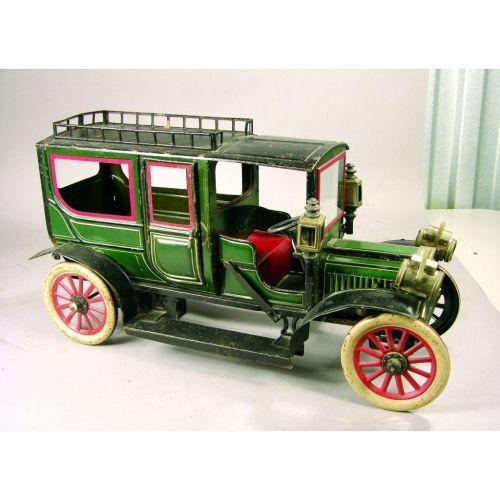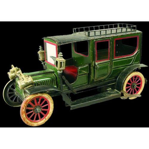 1917 German Carette tin toy limo. All original glass, lights and key. A few rust spots, no driver or passenger otherwise good condition. 15 inches long.