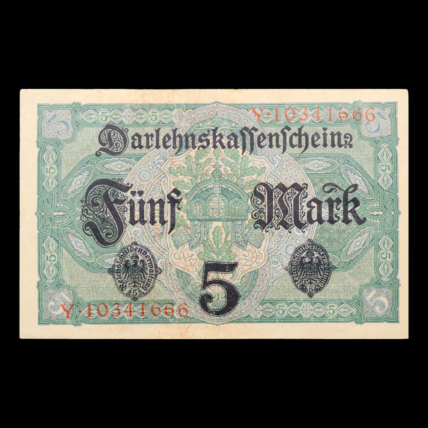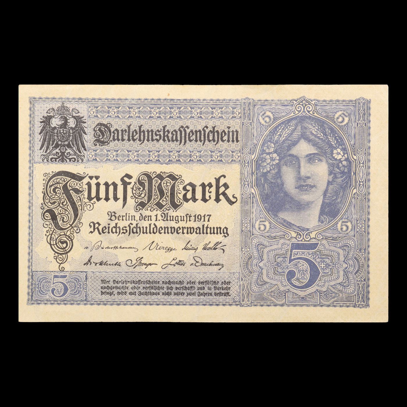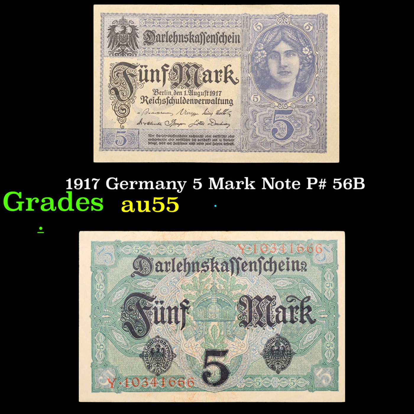 1917 Germany 5 Mark Note P# 56B Grades Choice AU.