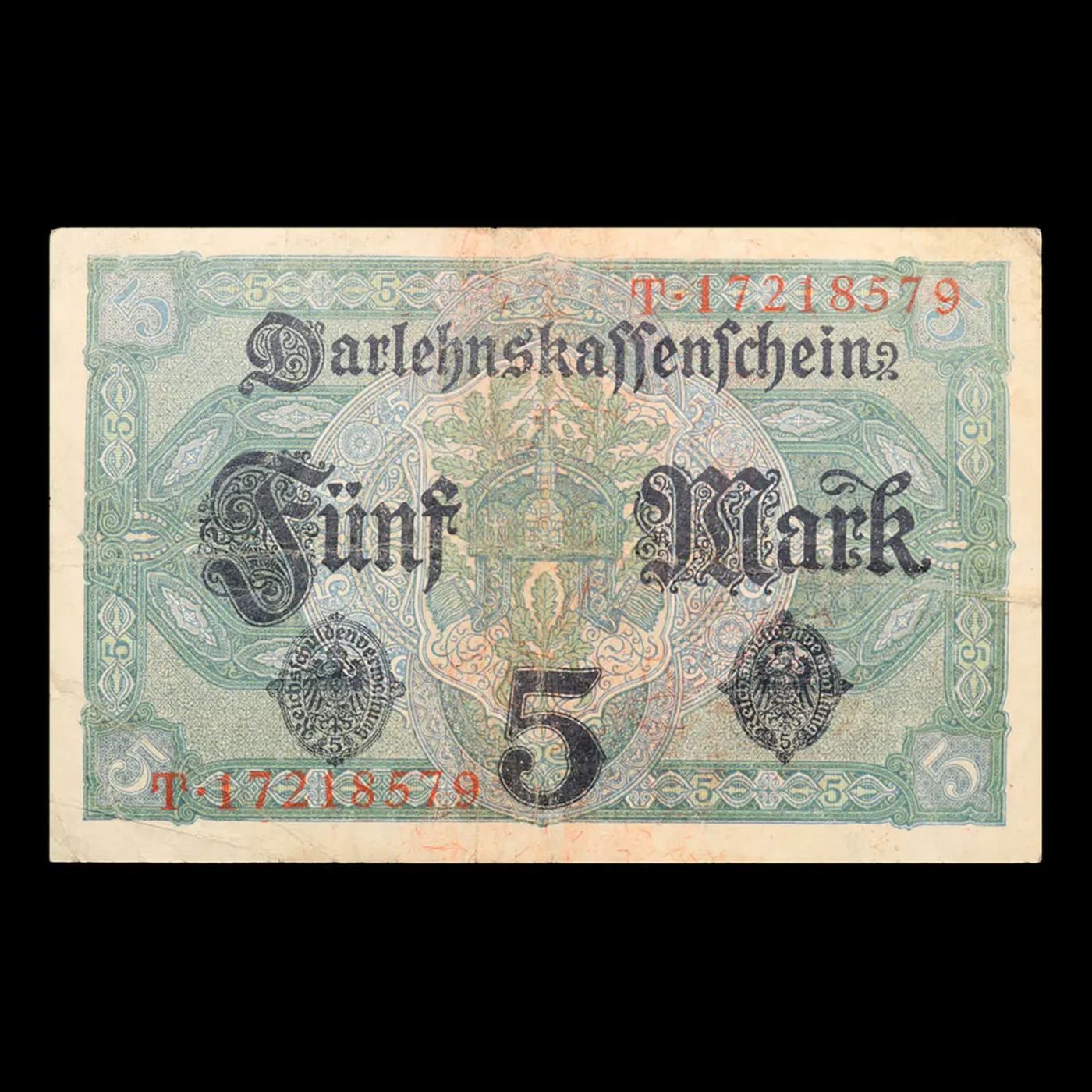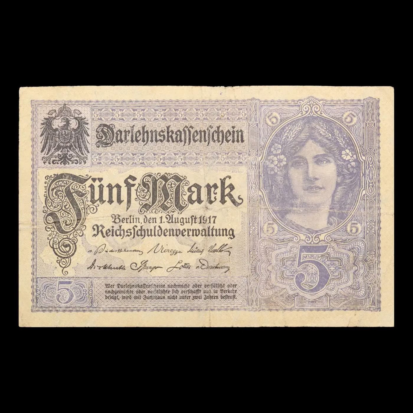 1917 Germany 5 Mark Note P# 56B Grades vf++.