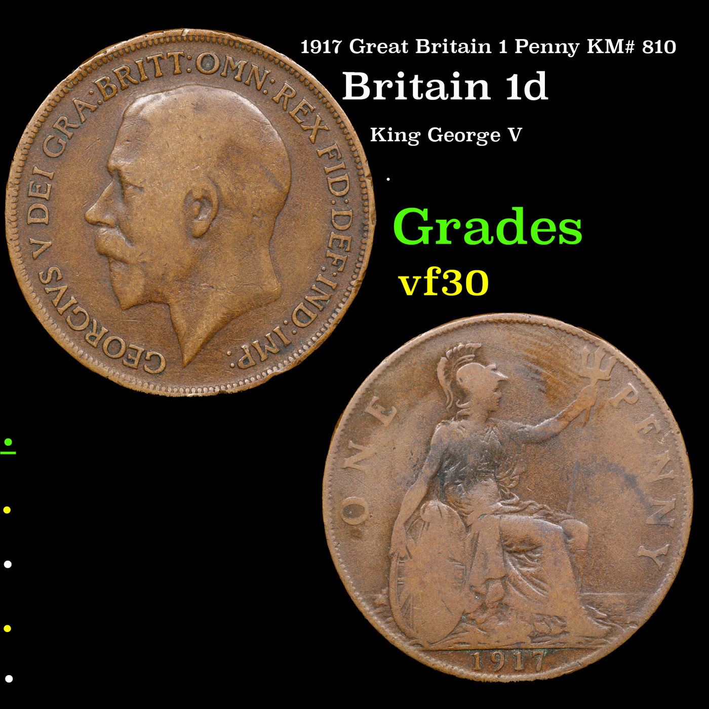 1917 Great Britain 1 Penny KM# 810 Grades vf++.
