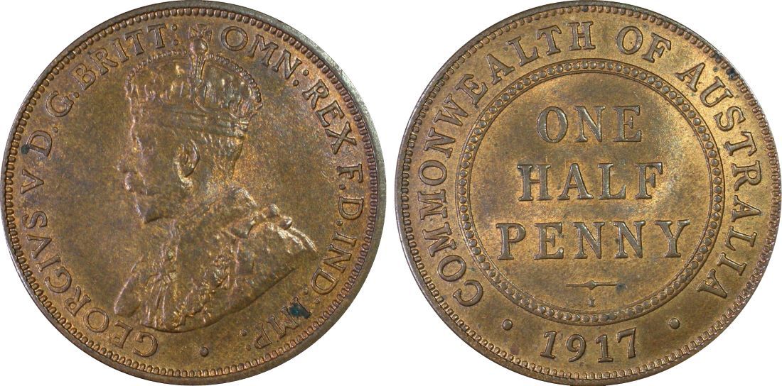 1917-I Australian KGV Half Penny PCGS MS 64 RB