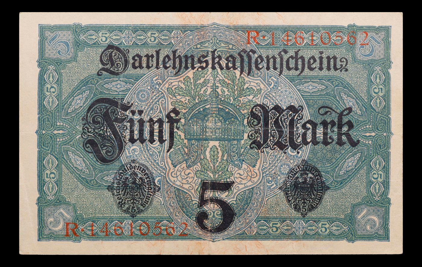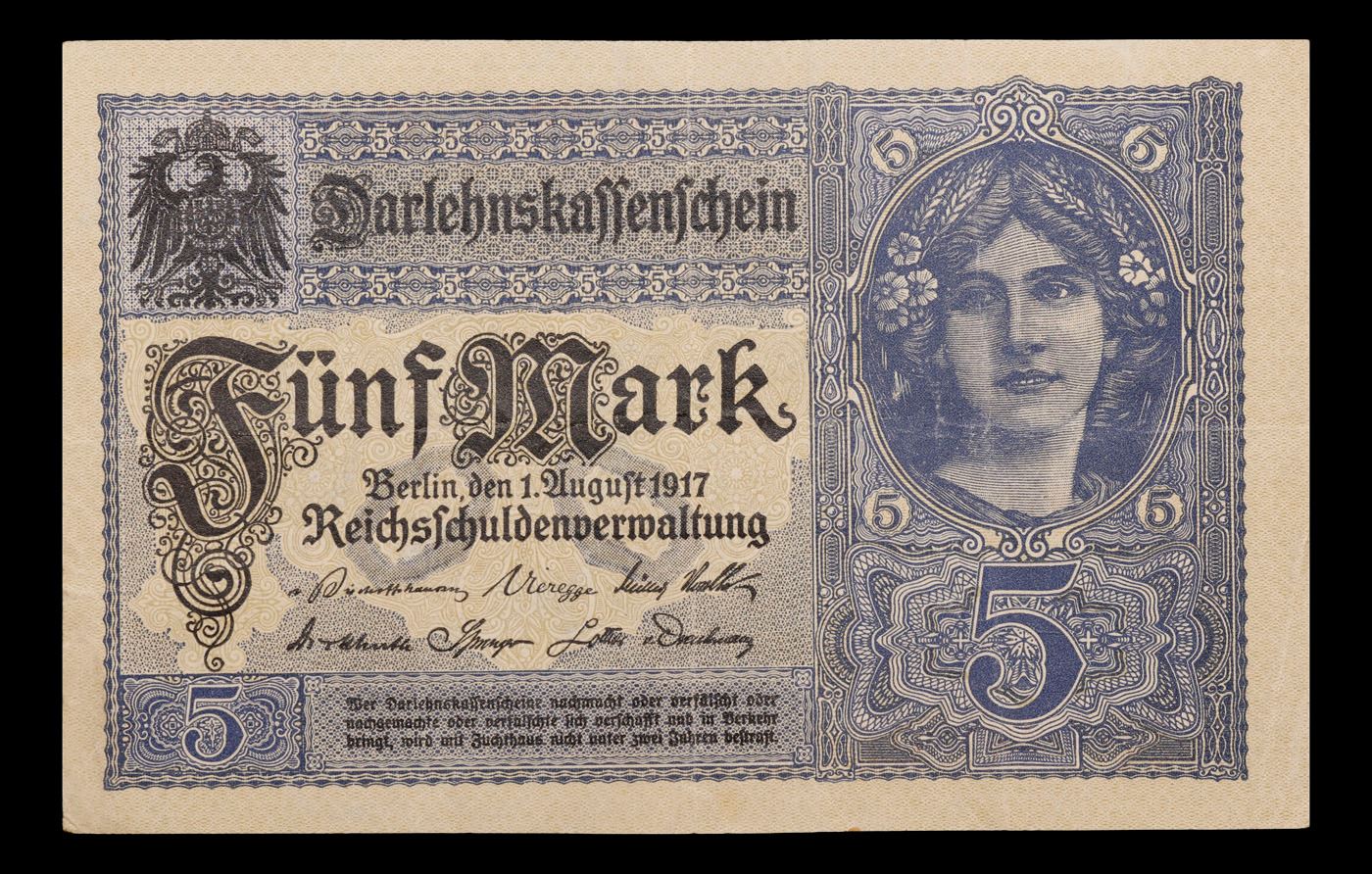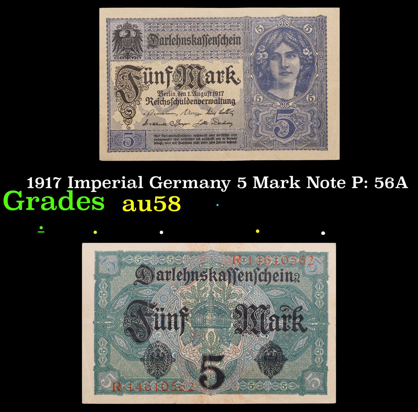 1917 Imperial Germany 5 Mark Note P: 56A Grades Choice AU/BU Slider.
