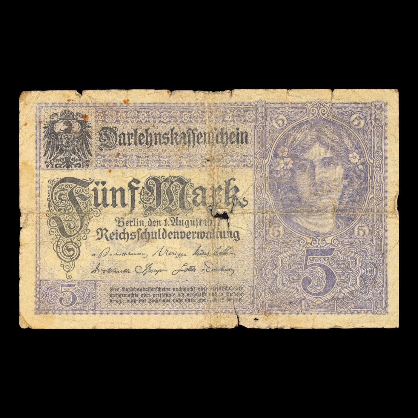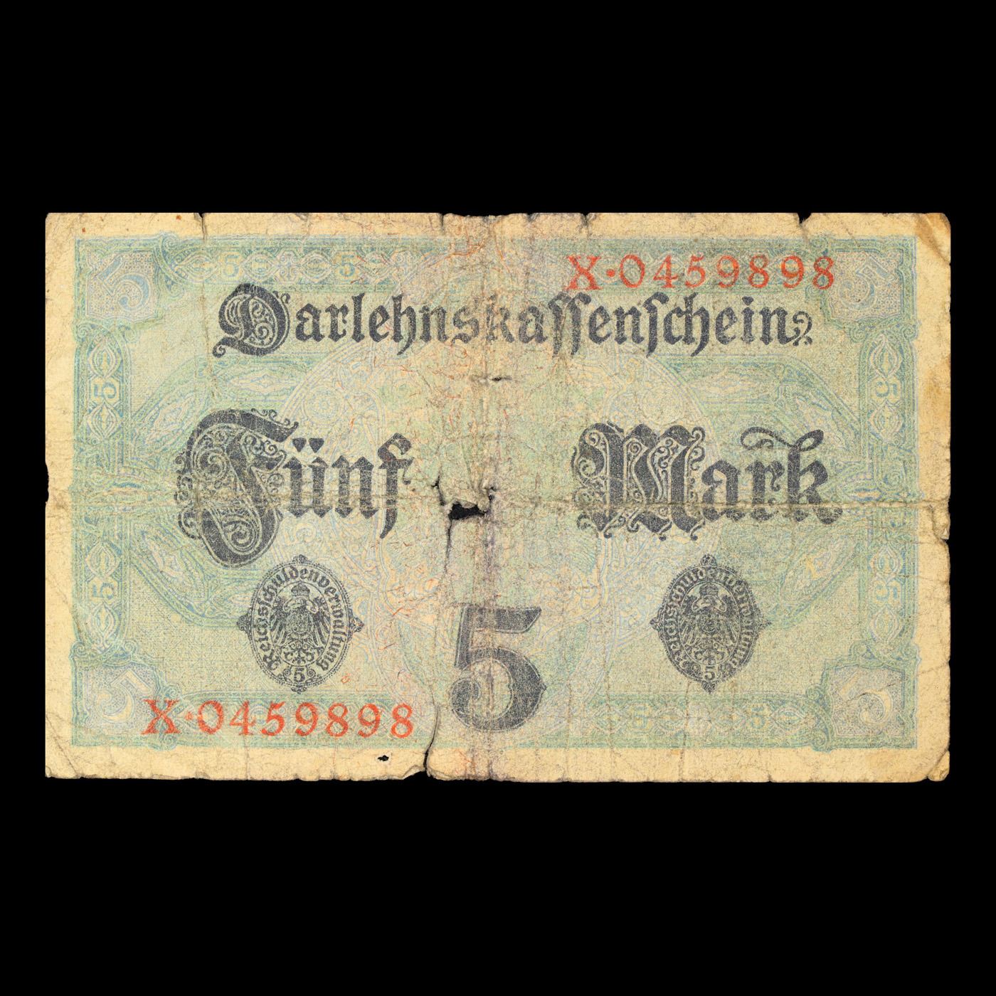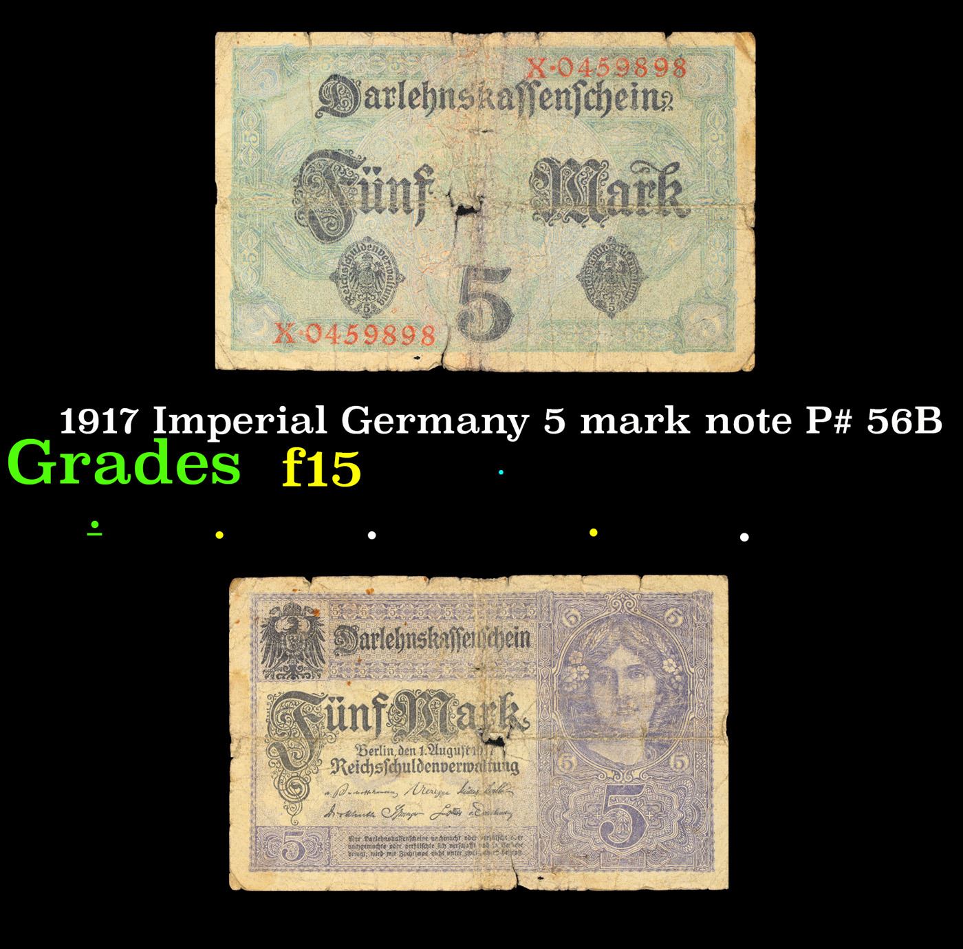 1917 Imperial Germany 5 mark note P# 56B Grades f+.