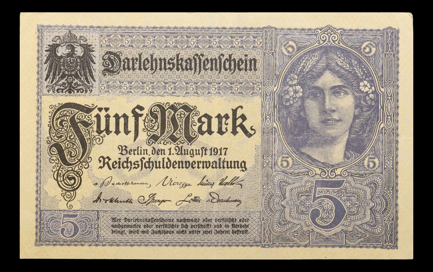 1917 Imperial Germnay 5 Mark Note P# 56B Grades xf.