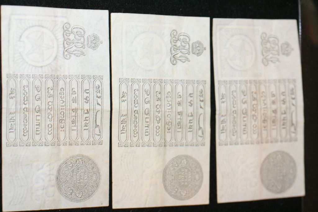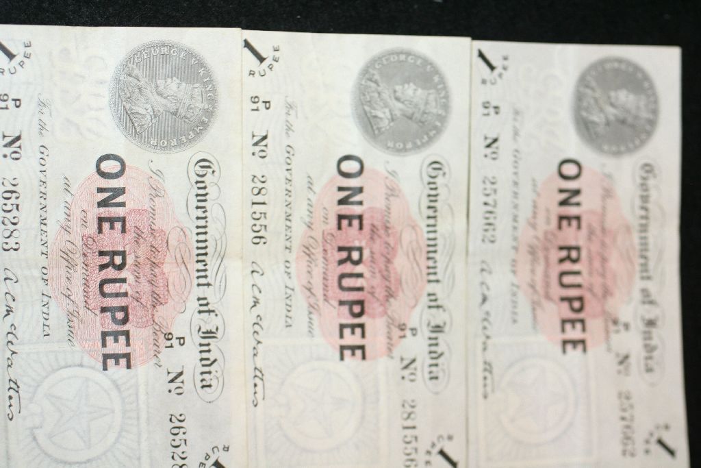 1917 Indian 1 Rupee Foreign Bank Note; Lot of 3