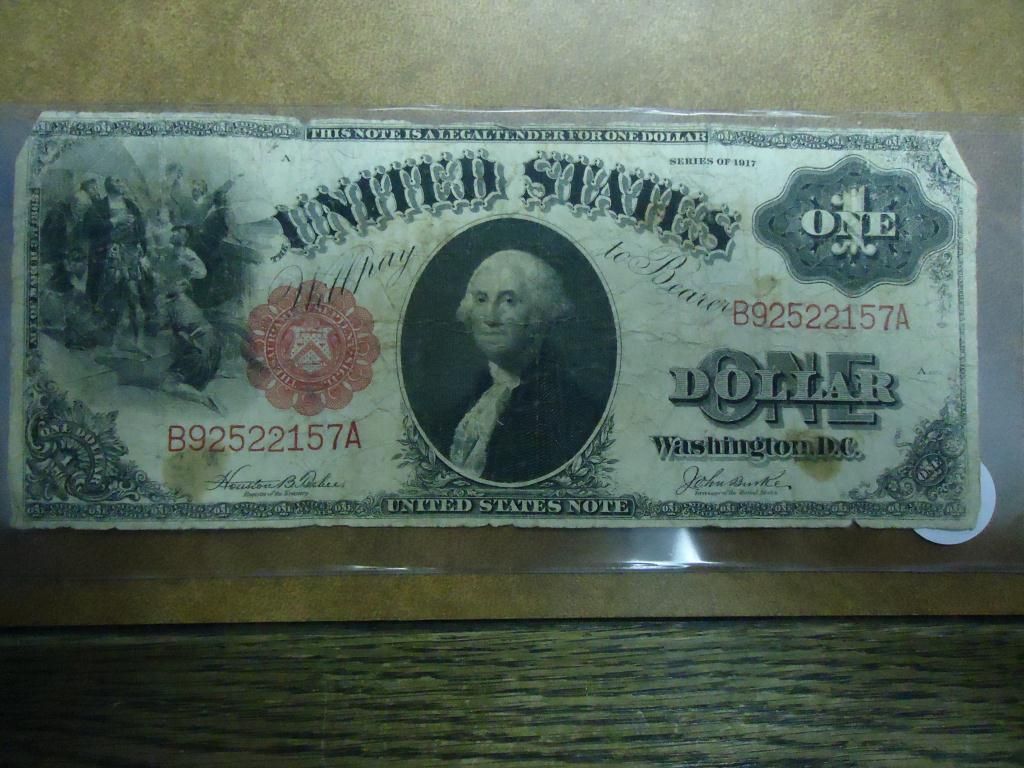 1917 LARGE SIZE $1 LEGAL TENDER NOTE RED SEAL