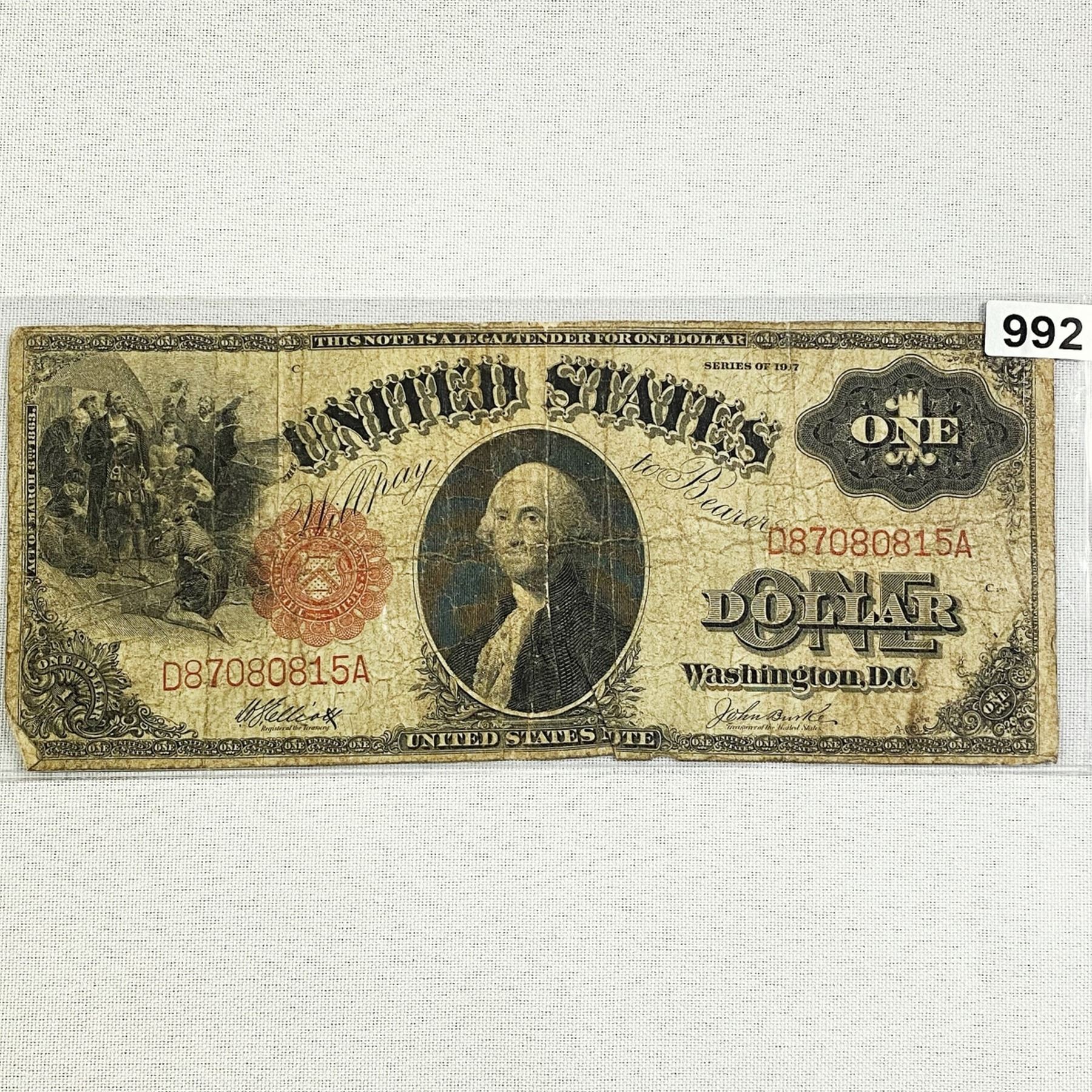 1917 LG $1 Federal Reserve Note - LIGHTLY CIRC