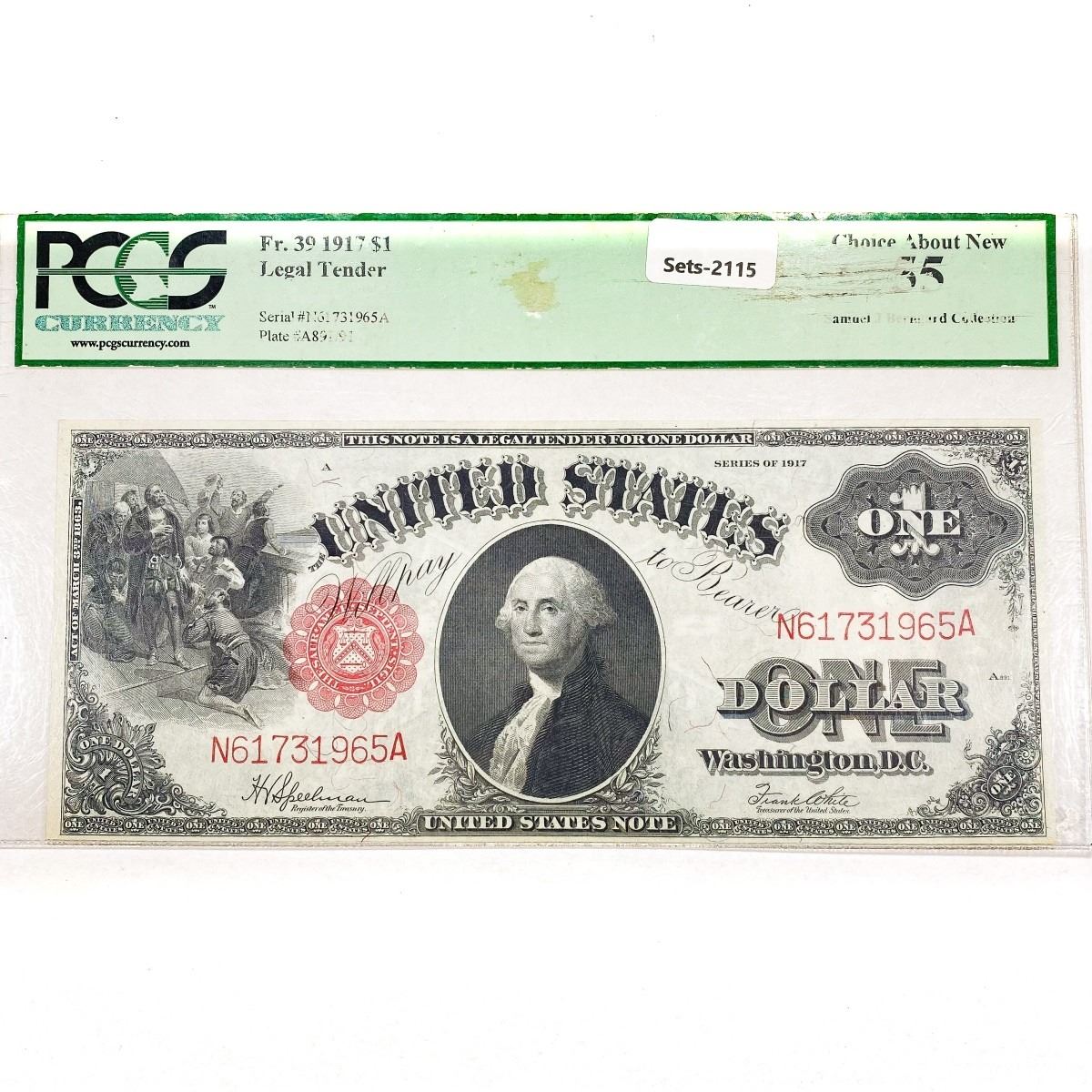 1917 LG $1 Legal Tender Note PCGS CH AU 55
