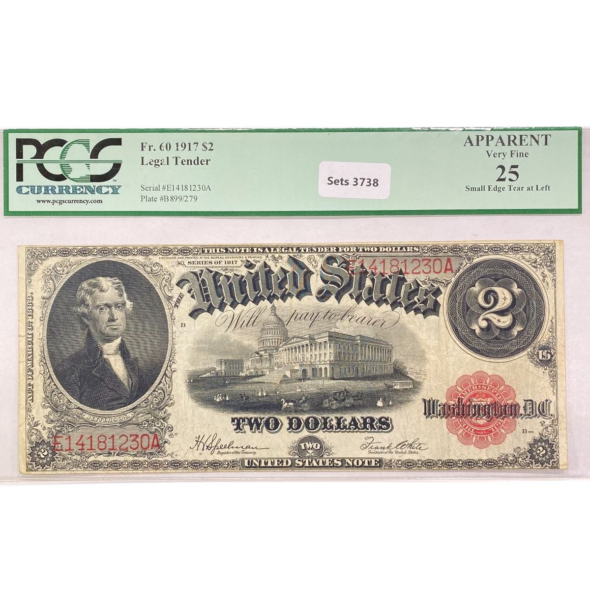 1917 LG $2 Legal Tender Note PCGS VF25
