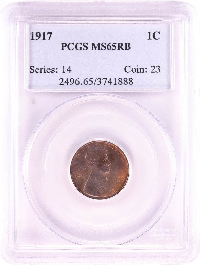 One 1917 Lincoln Wheat Cent Coin PCGS MS65RB. PCGS Graded.