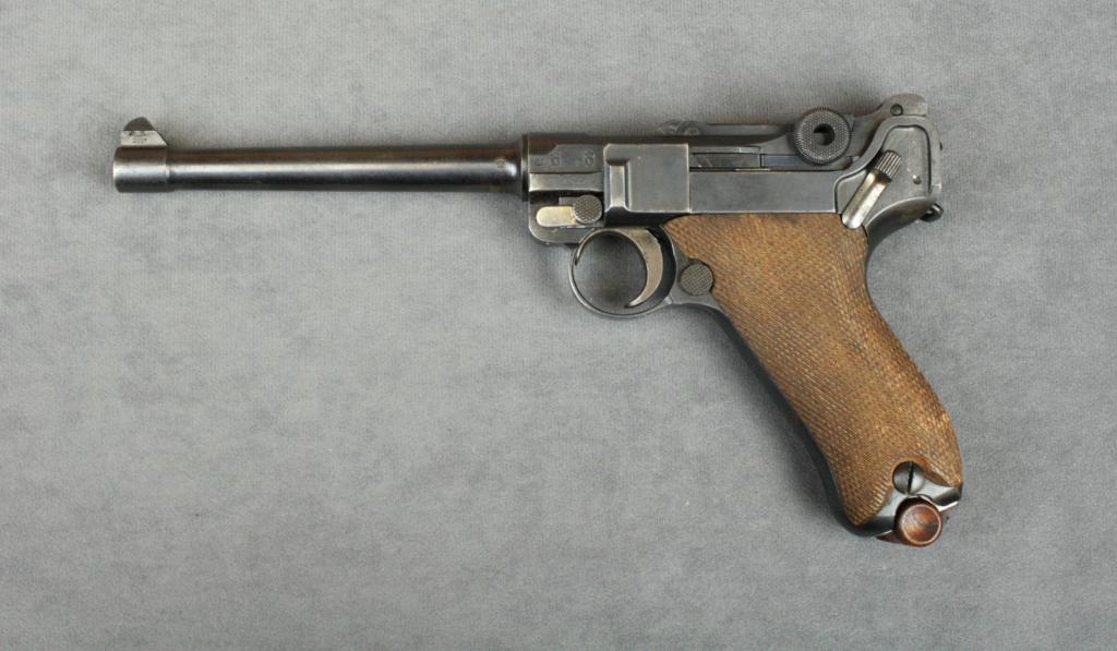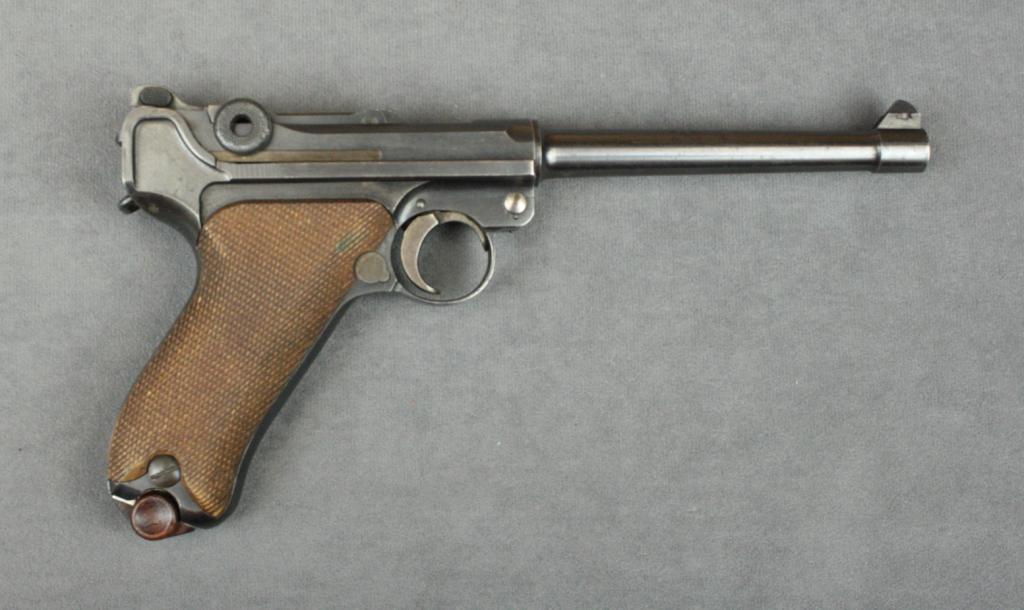 1917 Luger #3871 all matches except clip  which is not numbered and a period  replacement original WWI era clip. 90%-95%  plus original blue, sharp, crisp, very good  plus grips, strong markings. 1917 on sightand side of frame. Bright bore. From local  collector's estate. Est. $2,500-$5,000.
