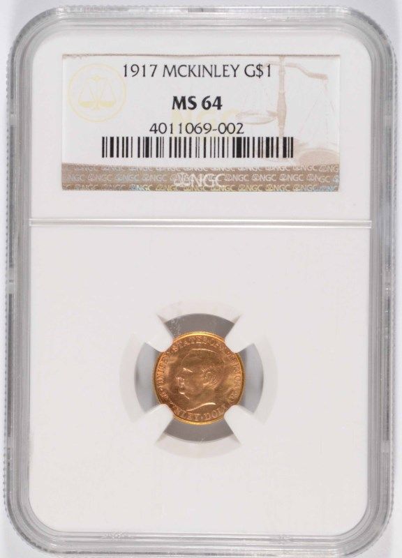1917 MCKINLEY GOLD DOLLAR NGC MS64, CHERRY, LOOKS MS65+