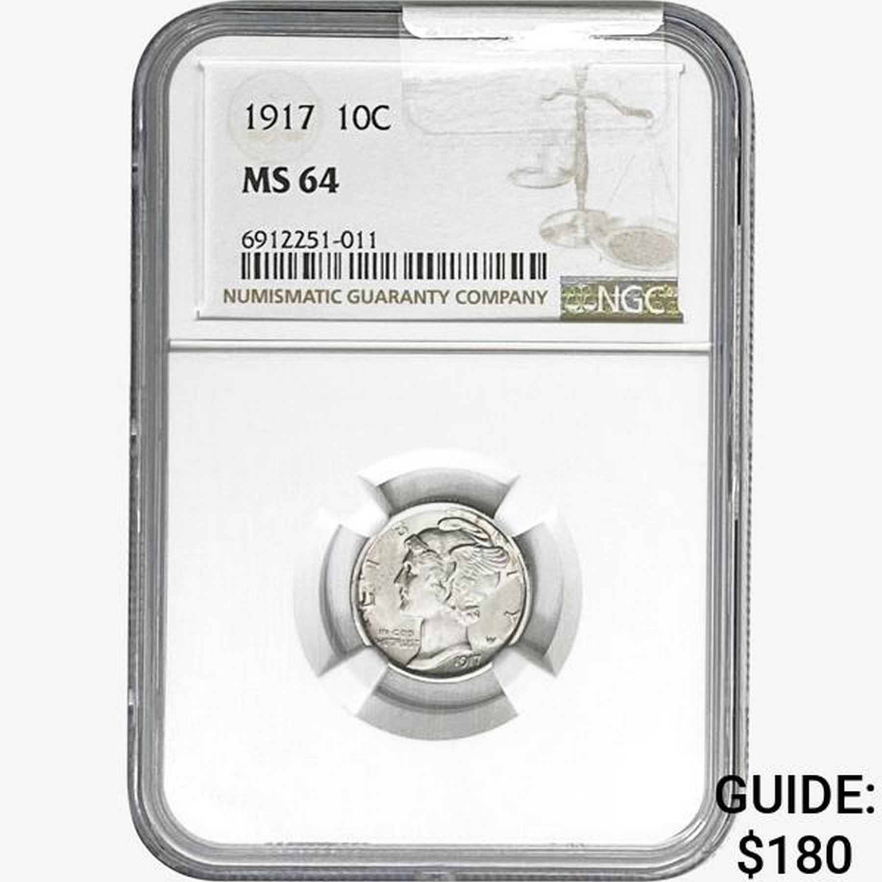 1917 Mercury Silver Dime NGC MS64