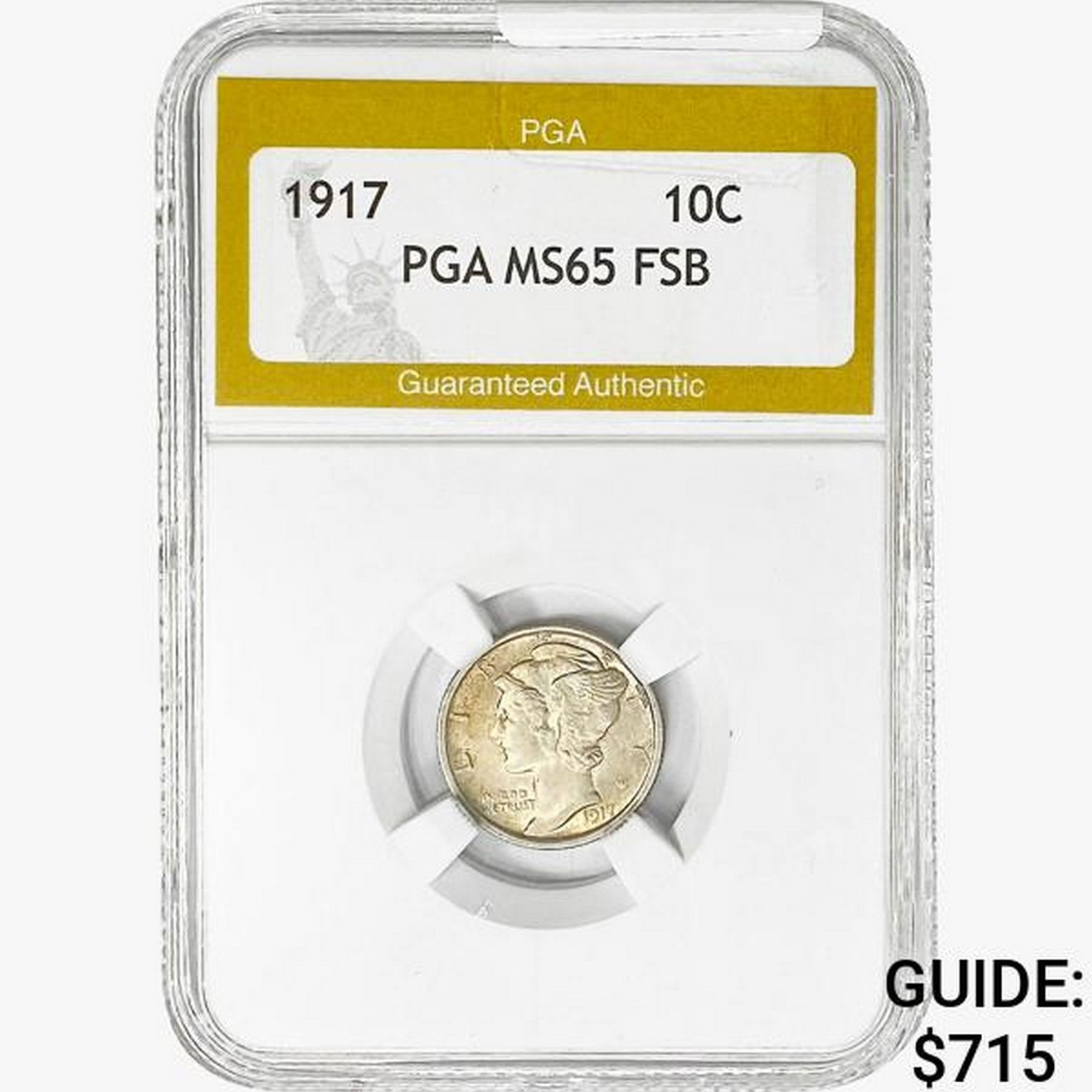 1917 Mercury Silver Dime PGA MS65 FSB