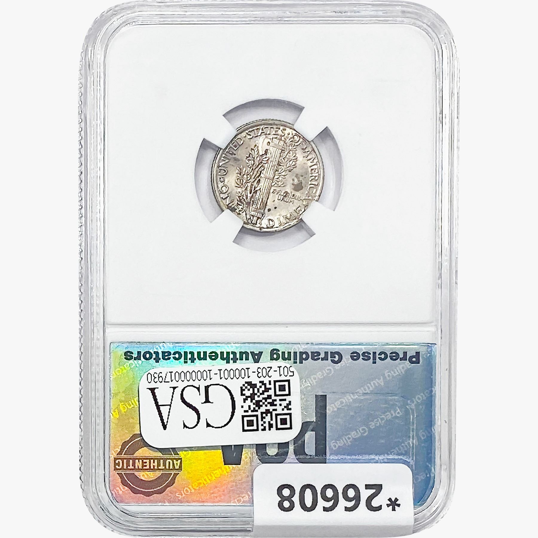 COINS AND CURRENCY LISTED IN GSA’S CATALOG AS GRADED AND ENCAPSULATED BY PCGS, NGC, ANACS, ICG, PCGS CURRENCY, PMG, PCGS BANKNOTE GRADING, CMC OR ANY OTHER THIRD-PARTY GRADING SERVICE ARE LIKEWISE SOLD “AS-IS” EXCEPT AS EXPRESSLY SET FORTH HEREIN. ALL THIRD-PARTY GRADING SERVICE GUARANTEES, INCLUDING AUTHENTICITY, ARE THE SOLE RESPONSIBILITY OF THE THIRD-PARTY GRADING SERVICE AND NOT WARRANTIES OR GUARANTEES OF GSA. BIDDERS SHOULD CONTACT THESE THIRD-PARTY GRADING SERVICES DIRECTLY WITH RESPECT TO ANY CLAIMS OR QUESTIONS THEY MAY HAVE CONCERNING THEIR GUARANTEES AND WARRANTIES. BIDDERS ACKNOWLEDGE AND AGREE THAT AUCTIONEER IS NOT BOUND BY OR LIABLE FOR ANY OPINION OR CERTIFICATION BY ANY THIRD-PARTY GRADING SERVICE. REMOVAL OF A PRODUCT FROM ITS PROTECTIVE CASING OR HOLDER OR ALTERATION OF ANY COIN HOLDER WAIVES ALL RIGHTS CONCERNING THE PRODUCT CONTAINED THEREIN.