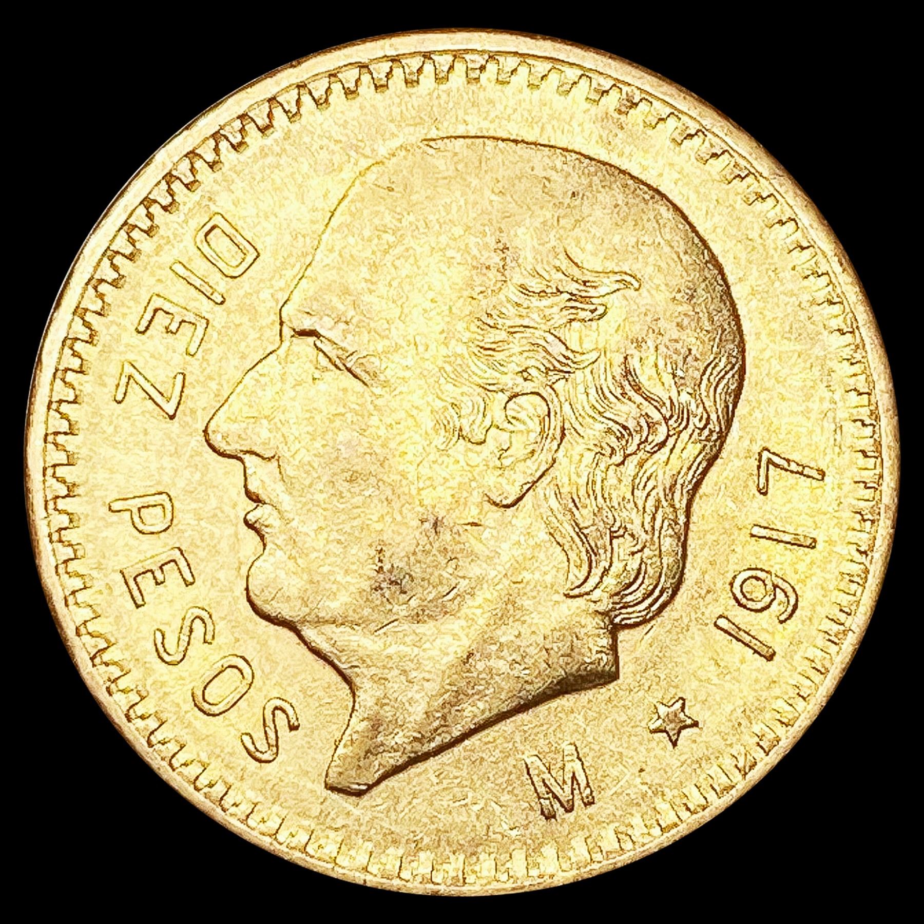 1917 Mexico .2411oz Gold 10 Pesos CLOSELY UNCIRCUL