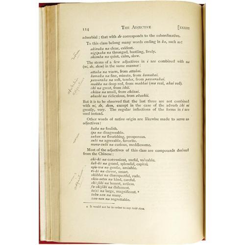 <B>1917 Moe Berg's Personal Japanese Language Textbook.</B></I> This unassuming hardcover entitled, "A Text-Book of Colloquial Japanese" carries tremendous historical significance, as any scholar of the historic 1934 Baseball Tour of Japan will know. In a line-up studded with legends and superstars like Ruth, Gehrig and Foxx, fellow tourist Moe Berg seemed an unlikely teammate back in '34. But as well all now know, the highly-educated and multilingual Berg was operating as a spy for the U.S. government, gathering information which would prove crucial in the waging of the Second World War. This book helped a young catcher and spy to learn the language that would make his espionage possible. Berg's distinctive personalized stamp is found in several places throughout the hardbound volume, as are various pencil notations in Berg's hand. Imagine how different the course of baseball and American history might have been in the absence of this book! Dust jacket is missing, but the book is otherwise in fine, undamaged condition.