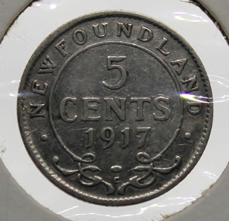 1917 NEWFOUNDLAND 5 CENTS SILVER COIN