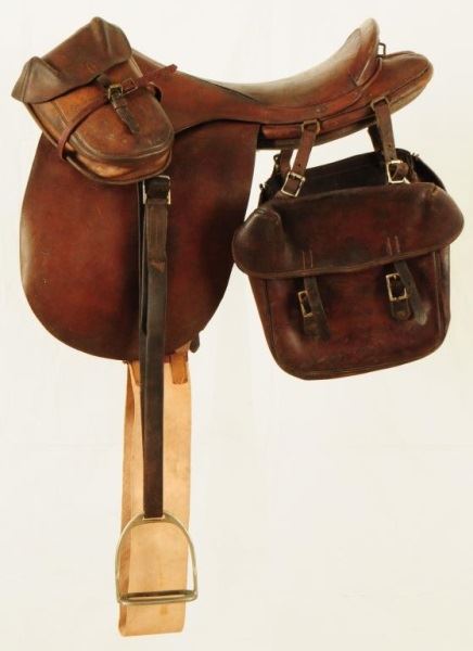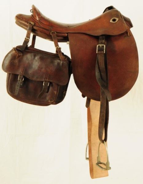 1917 officer's saddle. Together with 1 pommel bag, both saddle bags, and cinch.