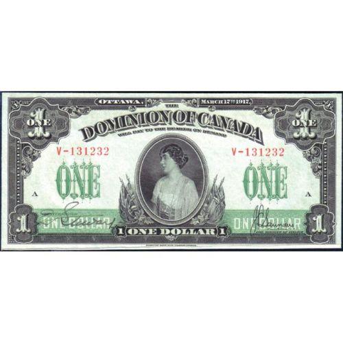 1917 One Dollar, Saunders, No Seal, DC-23b, Serial Number V-131232 A, Uncirculated. A slight bias cut along the lower margin