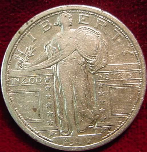 1917 P Type One ôBare Breastö Standing Liberty Quarter. VF.