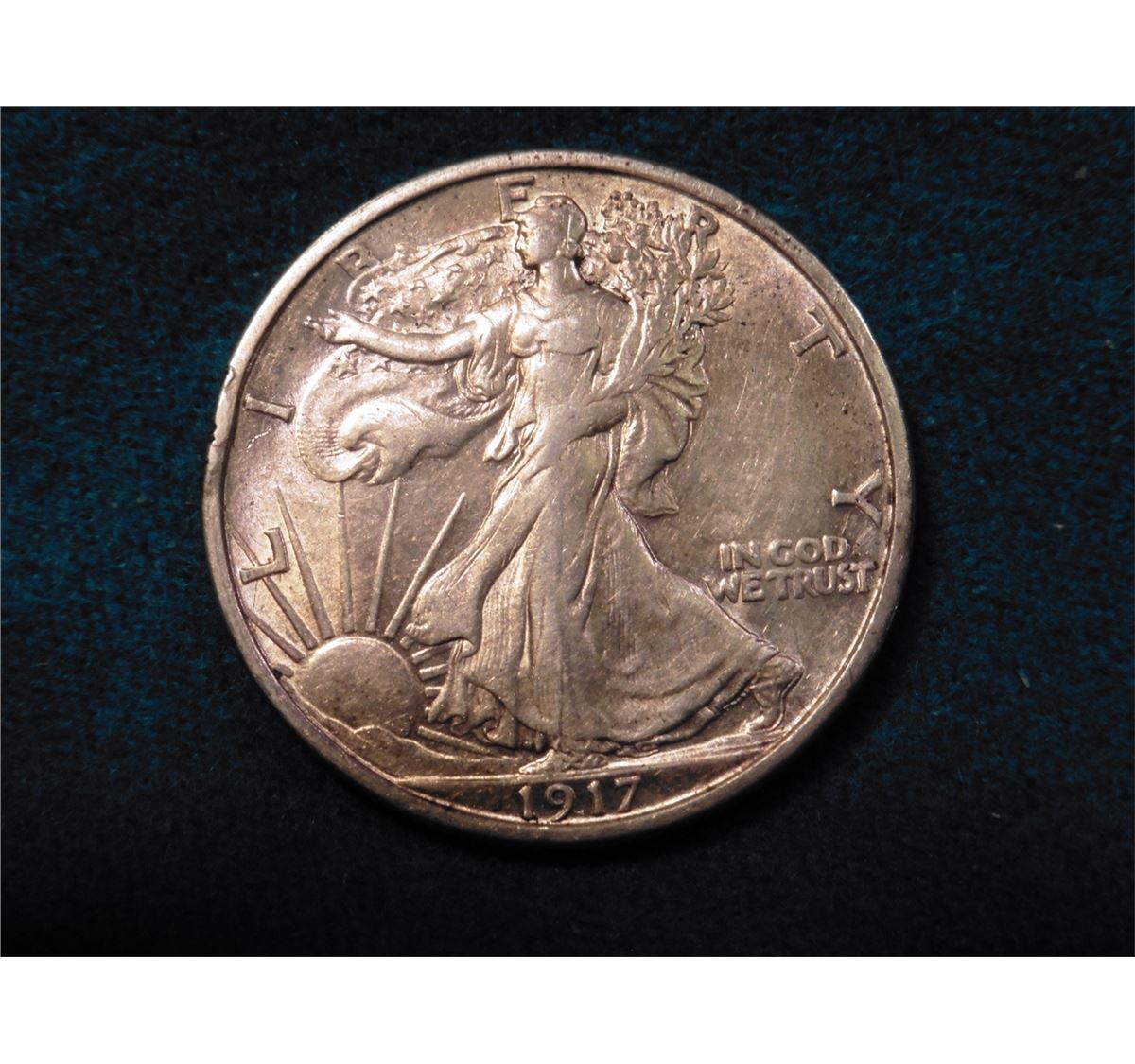 1917 P Walking Liberty Half Dollar. AU. Red Book value $70.00.