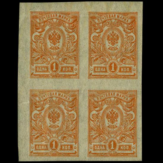 1917 RARE Russia 1 Kopek Mint Postage Stamp Imperforate Block of 4 (STM-0322)