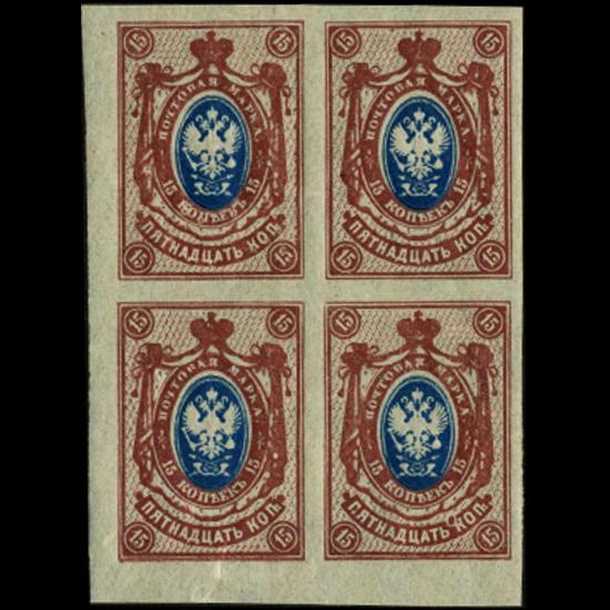 1917 RARE Russia 15 Kopek Mint Postage Stamp Imperforate Block of 4 (STM-0325)