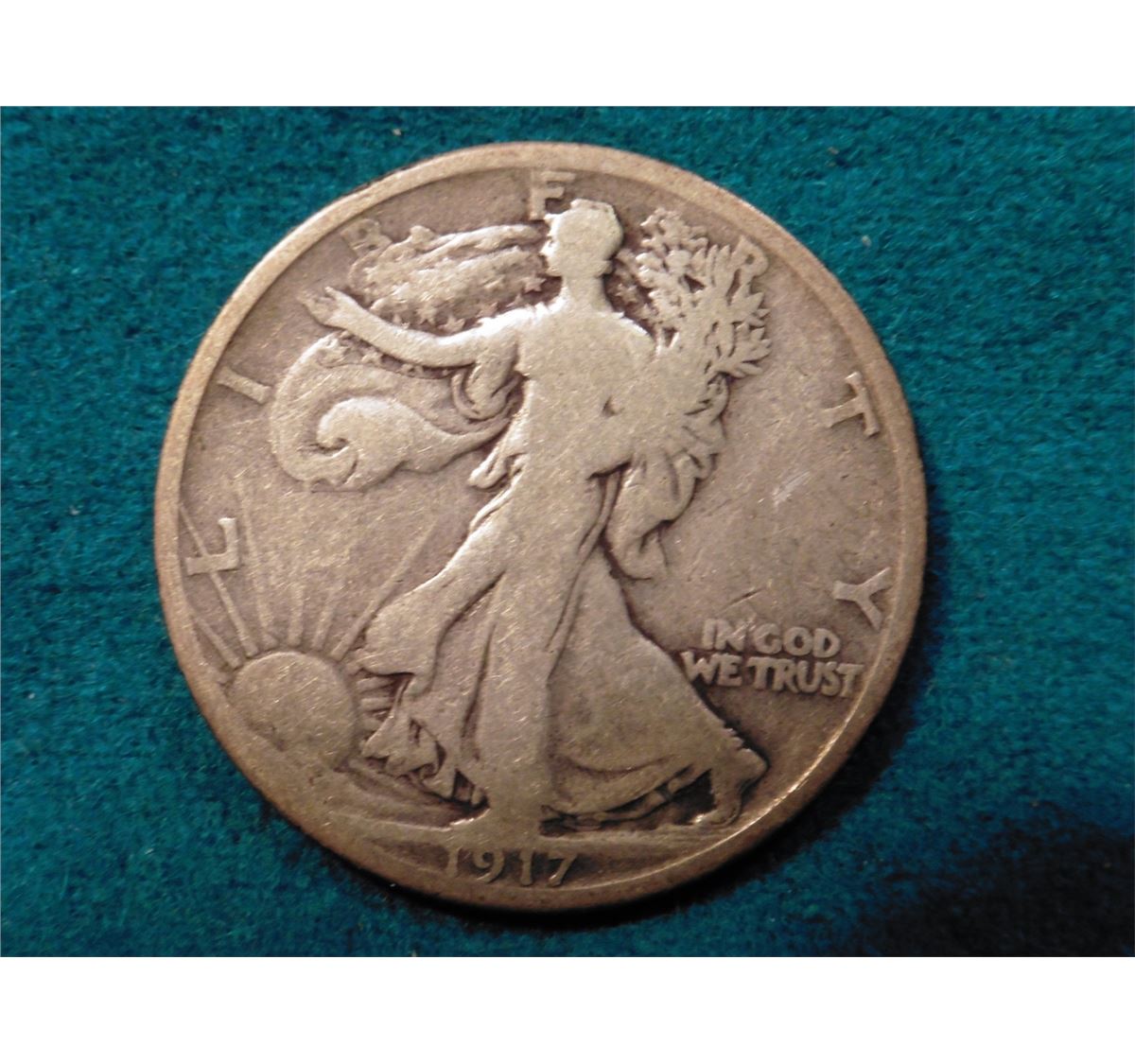 1917 Reverse D Walking Liberty Half Dollar. Good. Red Book value $18.00.