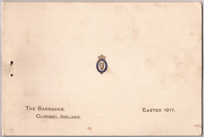 Scarce Easter greetings card sent by the Royal Irish Regiment in Clonmel to members of the 18th Vologodsky Regiment, Imperial Russian Army. With internal photograph of two drummers of the regiment. An unusual item.