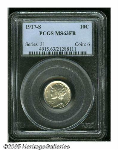 <B>1917-S<10C> MS63 Full Bands PCGS.</B></I> Well struck, untoned, and fully lustrous, with nearly undisturbed surfaces that only have one or two tiny nicks, near the center of each side.