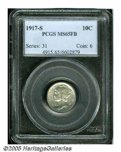 <B>1917-S<10C> MS65 Full Bands PCGS.</B></I> Exceptional definition without even a hint of weakness on the bands. The luster is bright and the surfaces free of distracting marks.