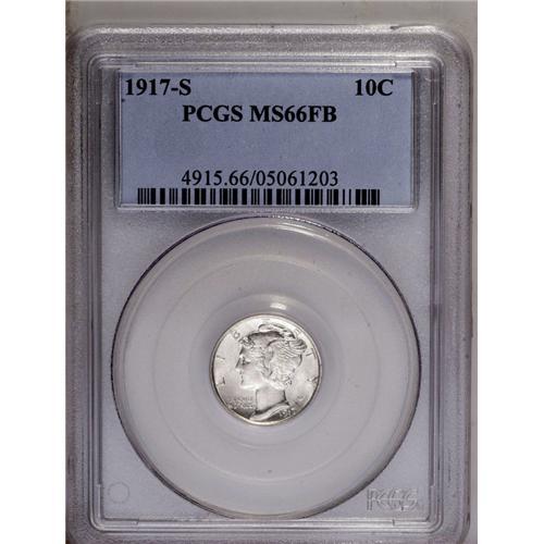 <B>1917-S<10C> MS66 Full Bands PCGS.</B></I> Blazing luster combines with exquisitely executed motifs to generate breathtaking eye appeal. The obverse surfaces reveal wisps of speckled gold color under magnification. Occasional die polish lines are apparent in the fields, especially those on the obverse. Population: 52 in 66, 10 finer (6/06).