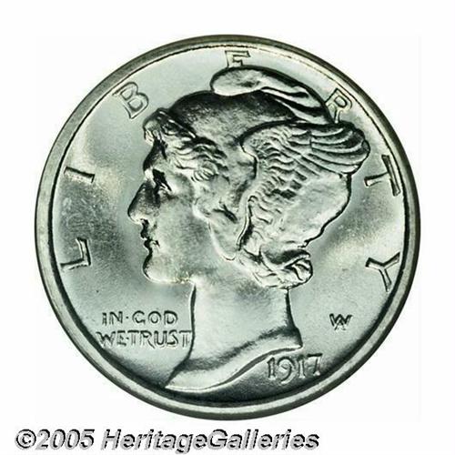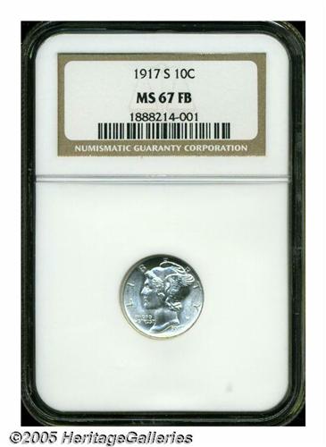 <B>1917-S<10C> MS67 Full Bands NGC.</B></I> A radiant, untoned example with bold central details and impeccably smooth fields. Locating a finer example of this second year S-mint issue would prove to be a nearly impossible task. Population: 2 in 67, 1 finer (4/05).
