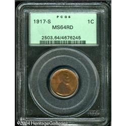 1917-S 1C MS64 Red PCGS. Boldly struck with rich c <B>1917-S 1C MS64 Red PCGS.</B></I> Boldly struck with rich coloration, pleasing luster, and moderate carbon on the seemingly unmarked surfaces. Population: 53 in 64, 16 finer (11/04).<BR><I>From The Dennis Dewart Collection.</B></I> <BR><BR><B>Important notice:</B> Heritage usually auctions material at the rate of 200-250 lots per hour. On some occasions eBay Live bid software or the Internet may not be able to keep up with the pace of the auction. We recommend placing a realistic absentee bid now as insurance to avoid disappointment. Occasionally the auctioneer may eliminate or reject an eBay Live bid, and the auctioneer may also reopen a lot after the close of the eBay live bidding (usually because we missed an audience bid), and may reject your bid even if it shows you as the winning bidder. By bidding via eBay Live, you agree that Heritage may award the lot to another bidder at its sole discretion under the circumstances described above or any other reasonable circumstances. Since eBay bids are not shown to us until we open the lot on the floor, we treat those bids just like floor bids. In most cases the floor responds before the eBay bid is presented to us, due to Internet lag time, so for consistency we have made it a policy that floor bids are always considered first over tie eBay live bids. Also please note that all Heritage lots purchased through eBay Live carry a 20% Buyer's Premium. Please make sure you read the Terms and Conditions before you bid. This lot is being auctioned in conjunction with a live floor auction by Heritage Galleries & Auctioneers. All final auction and invoice information will be supplied by Heritage Galleries & Auctioneers, and all other information should be considered preliminary. Lot:5148