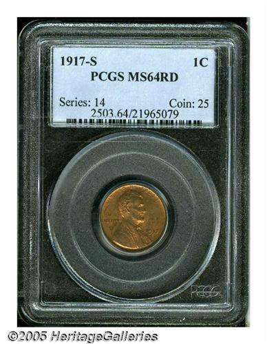<B>1917-S<1C> MS64 Red PCGS.</B></I> Bright cherry-red surfaces with some faint variegated darker color. Nicely struck, a couple of tiny marks on the denomination are noted for accuracy.