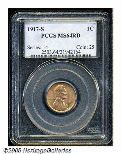 <B>1917-S<1C> MS64 Red PCGS.</B></I> Fully struck and spot-free with bright, original, red mint luster. Kept from MS65 by the presence of several carbon flecks clearly visible on each side.
