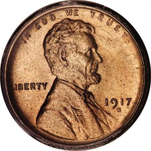 <B>1917-S 1C MS65 Red ICG.</B></I> While brown or red and brown 1917-S cents are usually available, fully red specimens are exceedingly scarce to rare, especially in Gem. This MS65 Red coin displays attractive yellow-gold luster and crisply defined design elements. Devoid of significant marks or unsightly spotting.<BR><BR><B>Coin Engraver:</B> Victor D. Brenner<BR><BR><b>Shipping:</b> Coins & Currency (<a target="_blank" href="http://www.heritageauctions.com/common/shipping.php">view shipping information</a>)
