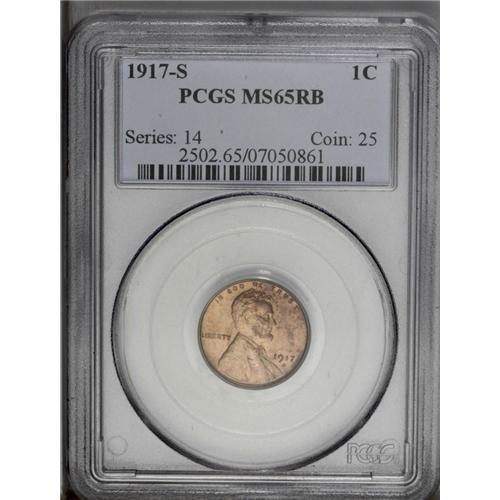 1917-S 1C MS65 Red and Brown PCGS. A nicely struck Gem
