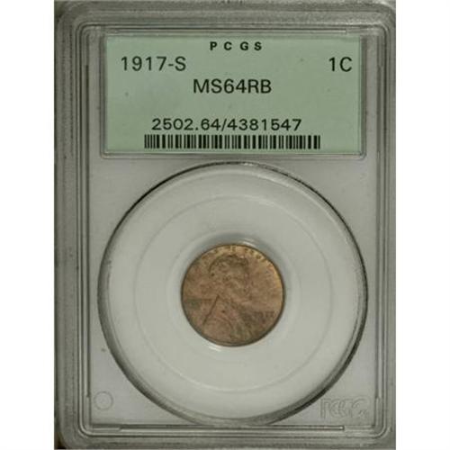 <B>1917-S 1C MS64 Red and Brown PCGS.</B></I> PCGS Population (151/31). NGC Census: (80/19). Mintage: 32,620,000. Numismedia Wsl. Price for NGC/PCGS coin in MS64: $358. (#2502)<BR><BR><B>Coin Engraver:</B> Victor D. Brenner<BR><BR><b>Shipping:</b> Coins & Currency (<a target="_blank" href="http://www.heritageauctions.com/common/shipping.php">view shipping information</a>)