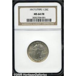 <B>1917-S 25C Type One MS64 Full Head NGC.</B></I> A very pleasing silver-gray, fully lustrous example of this Type One S-mint quarter. Sharply struck design elements transcend the Full Head to include virtually full definition on the inner shield, the rivets, and the eagle's torso. A trivial miniscule mark is noted on Liberty's midsection, and on the eagle's right wing.